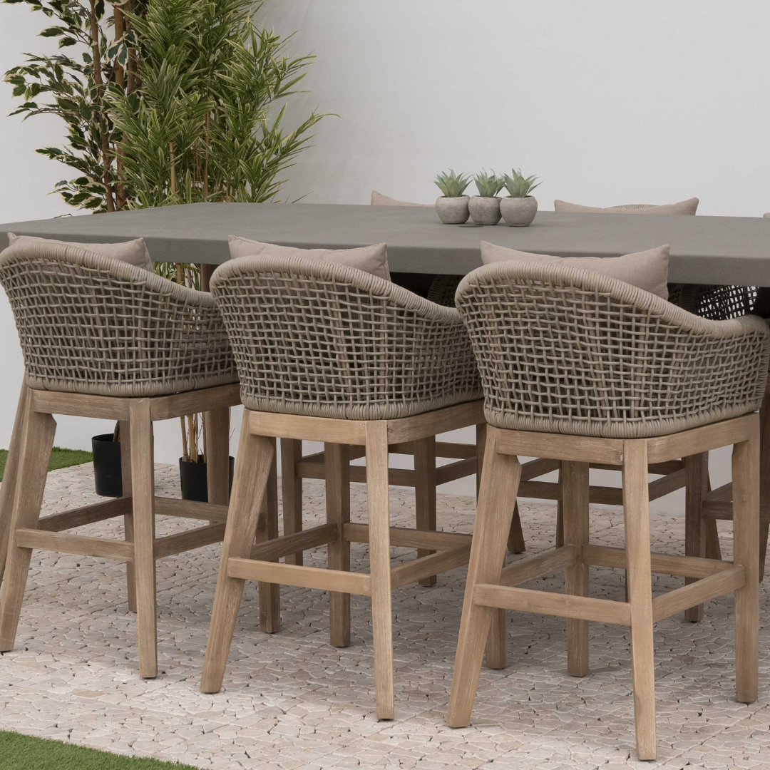 Designed with relaxation in mind, the Summer Collection includes high-specification olefin cushions, offering exceptional comfort for outdoor seating. The high dining chairs deliver elevated elegance, perfect for casual meals or entertaining guests with added presence. The polycrete tabletop adds a modern, low-maintenance touch with a rust-free design, while the incorporation of acacia wood provides a warm, natural aesthetic. Together, these materials create a harmonious blend of timeless beauty.