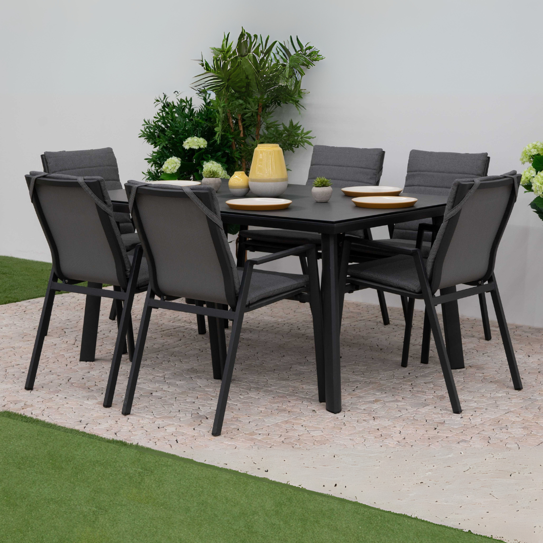 Nova - Zara 6 Seat Dining Set, 1.5m x 1 m Rectangular Table, Grey