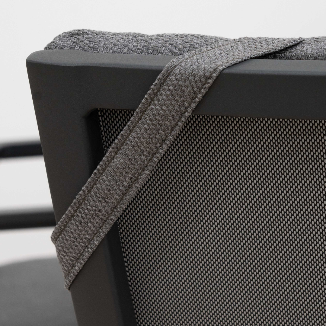 The Zara Collection is the perfect choice for creating an elegant and modern outdoor space. Each piece is made of powder-coated aluminium, ensuring both durability and a sleek aesthetic. The versatile texteline seats provide unmatched comfort, with or without cushions. This adaptable design makes the Zara Collection suitable for any season or occasion. A sophisticated glass tabletop adds a touch of refinement, complementing the set's elegant colour scheme and tying the design together seamlessly.