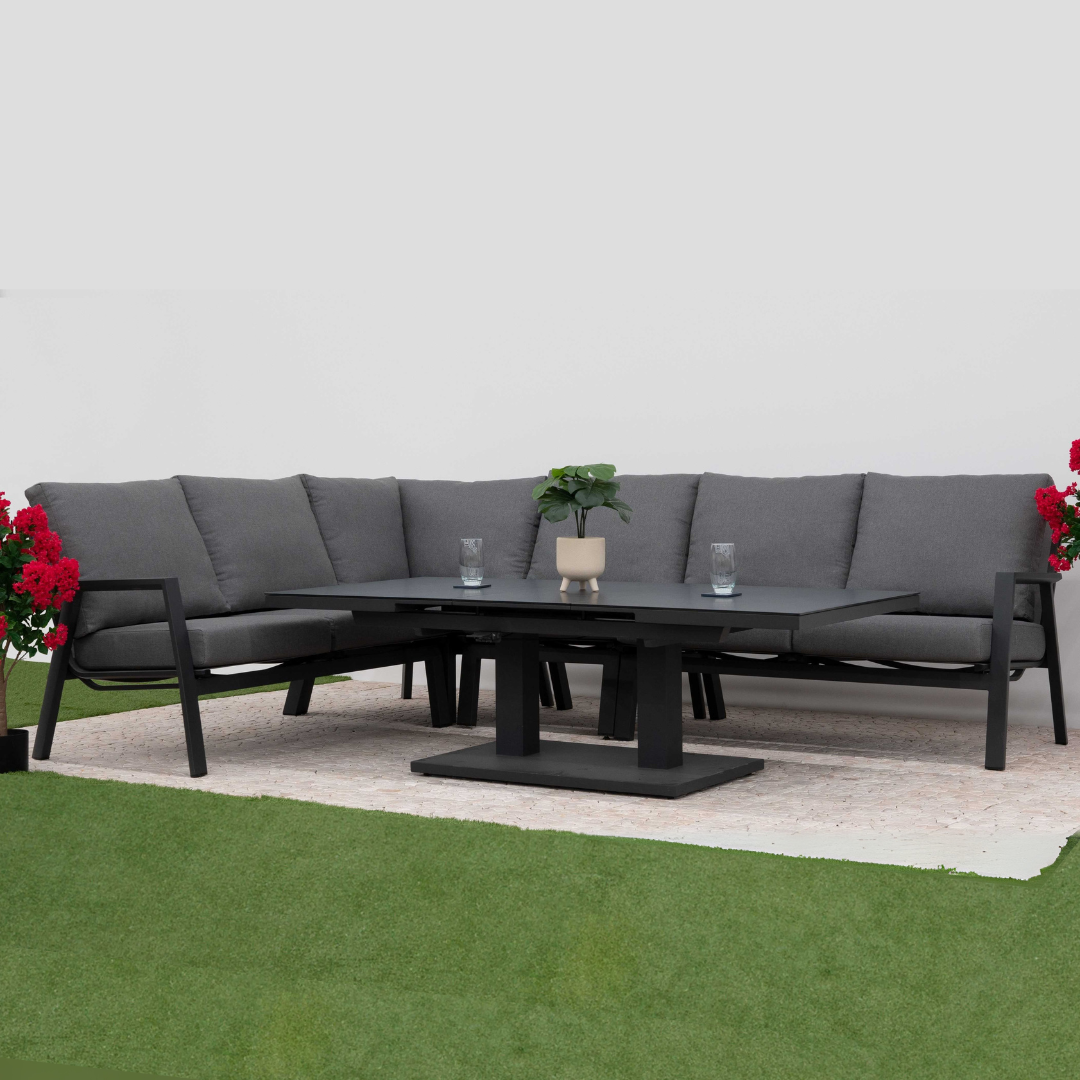 Nova - Zara L-Shaped Corner Sofa Lounge Dining Set with Rectangular Extending Rising Table, Grey